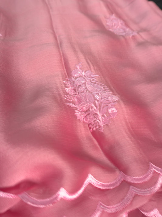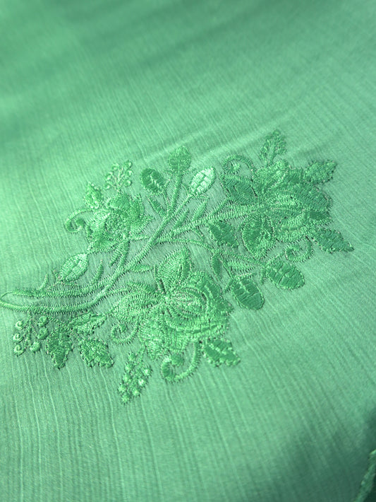 Aqua Green Shimmer Chiffon Saree with Thread Work