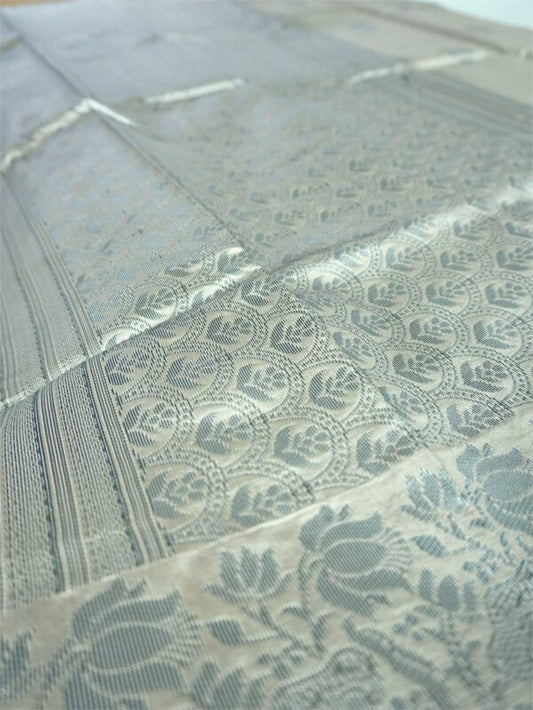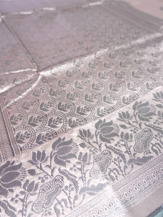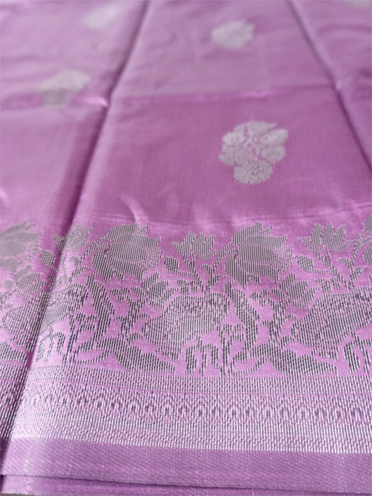 Soft Lilac Pink Saree with Black and silver Floral Border