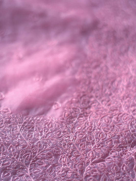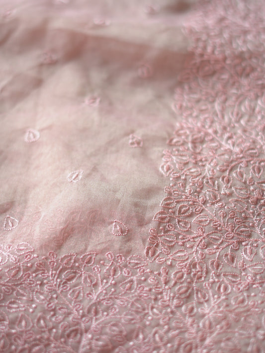 Baby Pink Organza Saree with Delicate Thread Embroidery