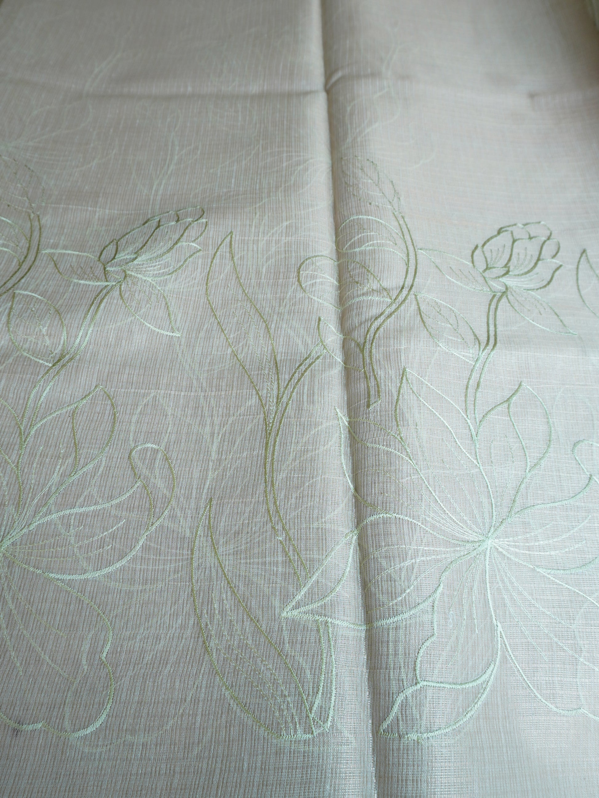 This stunning ivory Kota tissue saree is adorned with delicate floral thread work, giving it a soft and luxurious appeal. The lightweight Kota tissue fabric offers a natural sheen and crisp texture, making the drape look elegant and graceful. The intricate floral embroidery enhances its premium look, making this saree perfect for weddings, festive occasions, and special celebrations. A beautiful blend of tradition, elegance, and subtle sophistication.