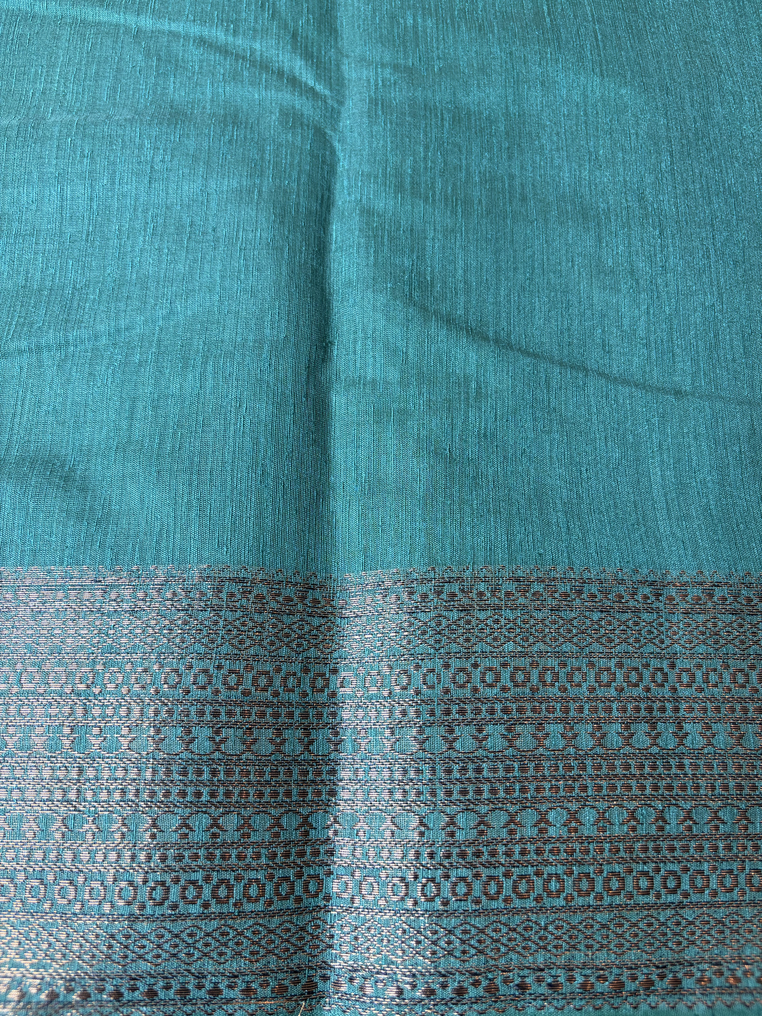 This elegant peacock blue semi jute silk saree features a rich, vibrant hue inspired by classic traditional tones. The lightweight semi jute silk fabric offers a subtle natural sheen and a beautifully textured drape, ensuring both comfort and sophistication. Perfect for festive occasions, weddings, and evening celebrations, this saree blends timeless elegance with a bold, regal colour. A striking addition to any ethnic wardrobe.